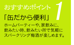 添加物を一切使用しない独自の製法で3年以上熟成させた梅酒原酒をベースに細かい炭酸を加えた、爽快ですっきりとした味わいで女性にも飲みやすい低アルコール(4%)のスパークリング梅酒です。