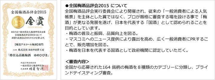 厳選された「鴬宿梅」を使用した長期熟成梅酒と、オーク樽で仕込んだ樽仕込高級梅酒ゆめひびきを贅沢にブレンド。