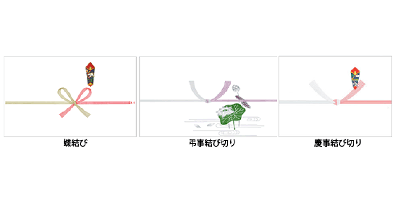 蝶結び、慶事結び切り、弔事結び切りをご用意しています。