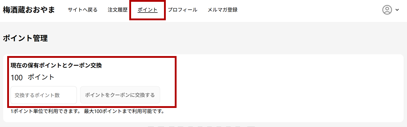 「現在の保有ポイントとクーポン交換」を確認します。