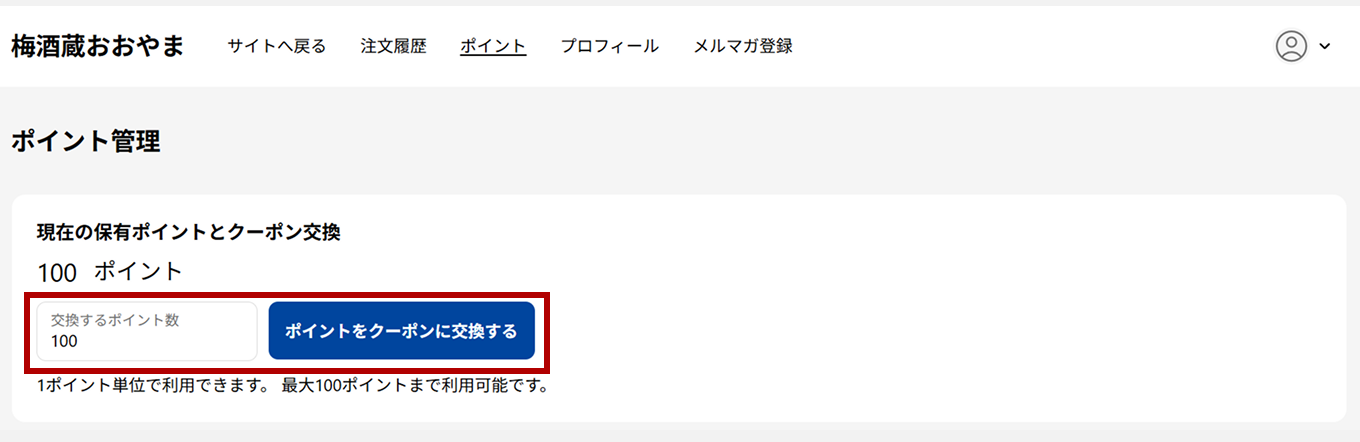交換するポイント数を入力し、クーポンへ引換を行います。