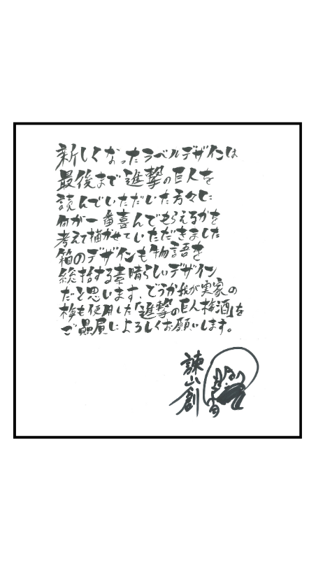 また今回、諫山氏ご本人から、この商品のために寄せられた直筆メッセージも届いています。